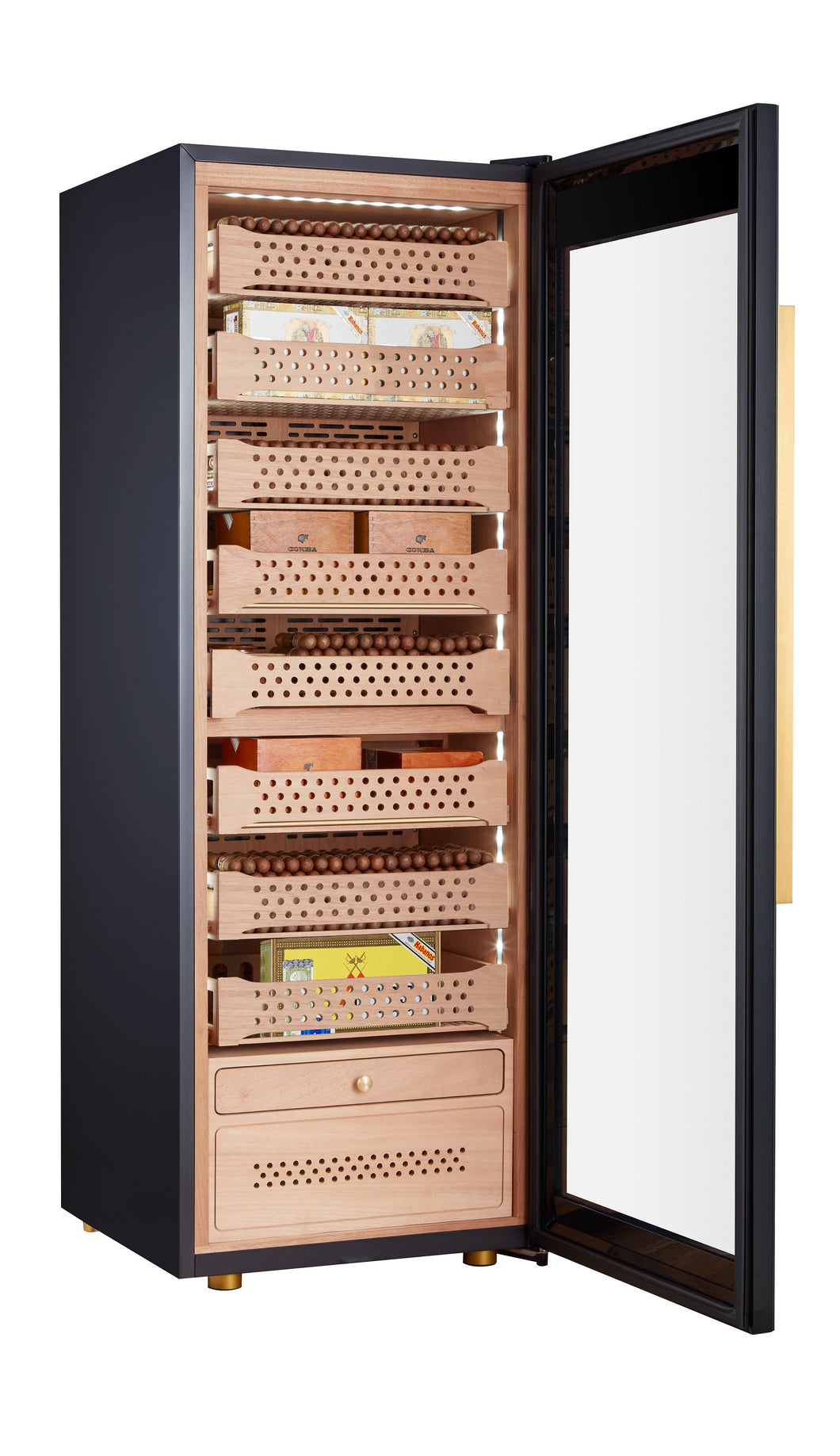 Afidano 1500 Count Cigar Humidor Cabinet Exterior in Steel, Temperature and Humidity Control with Touch Panel