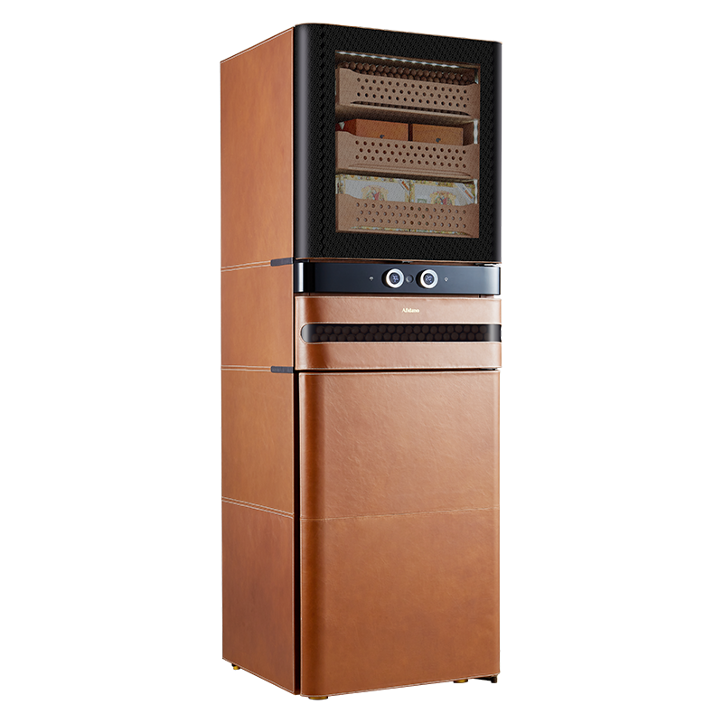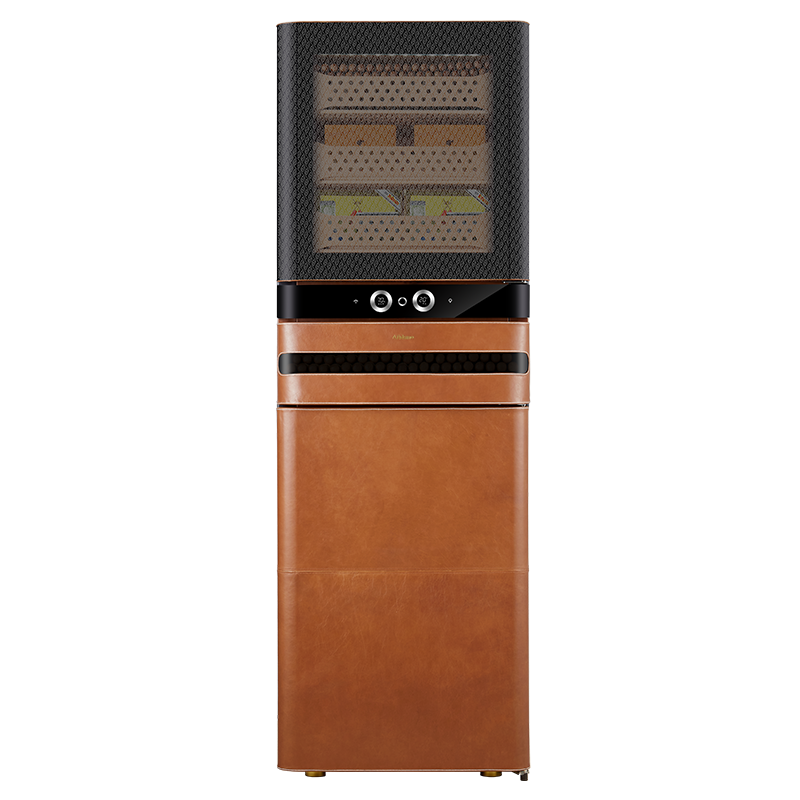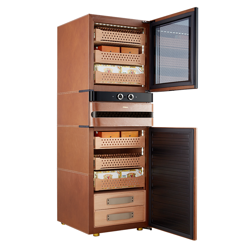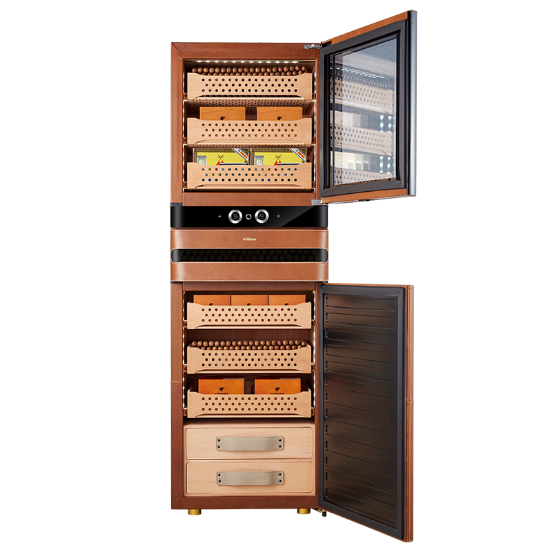 Afidano 2200 Ct Cigar Humidor, Temperature and Humidity Control with Classic Leather and Spanish Cedar Drawers