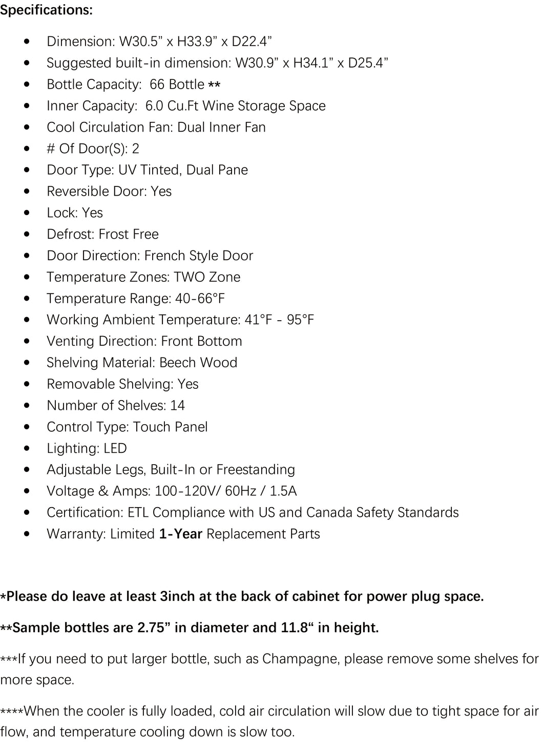 Digital Controls: Touch control allow easy temperature adjustment, between 40 and 66°F, and monitoring through digital display